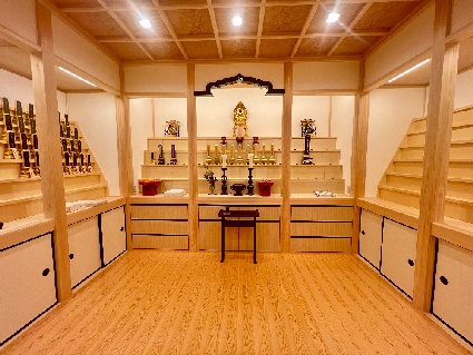 本堂奥の位牌堂は三方向に位牌棚を設け位牌を沢山置けるようにしました